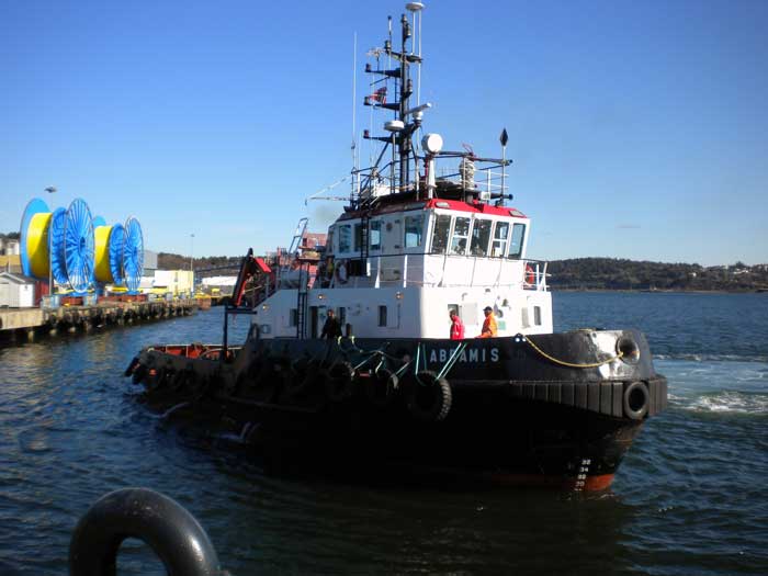 Byggd som AL MINSAF för Port Rashid Authoroty, sedan 1999 hos Trondhjem Bugser AS som ABRAMIS