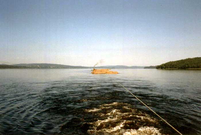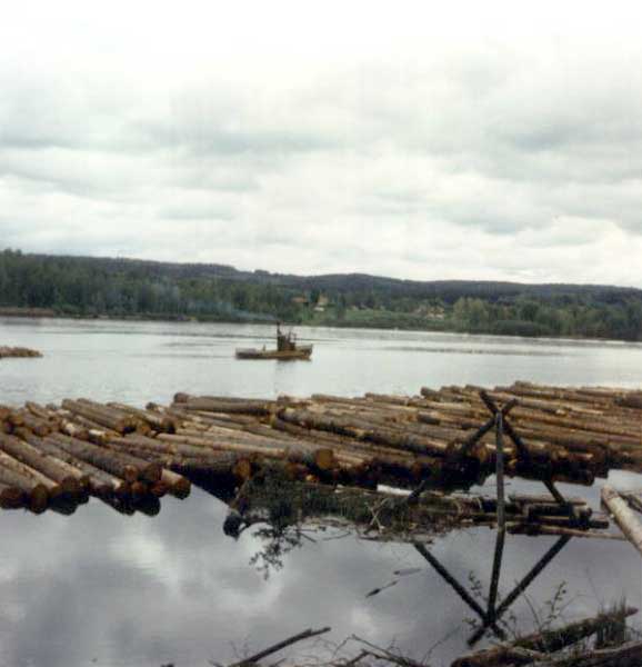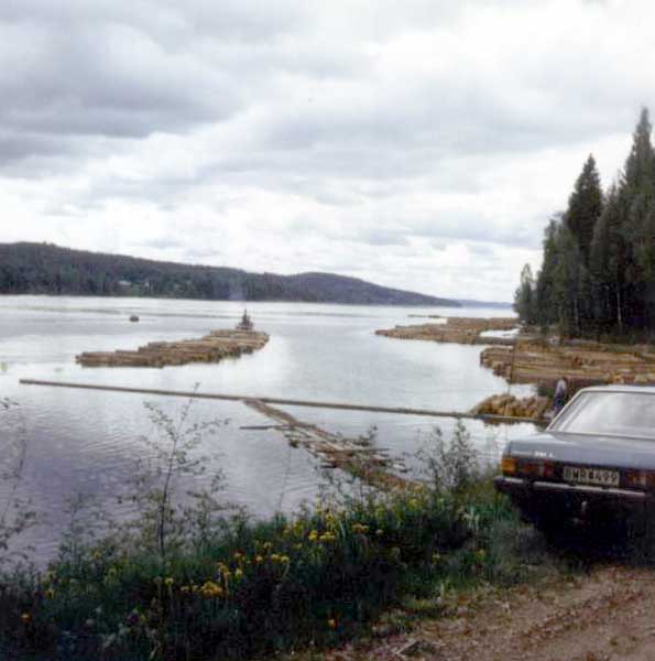 Engerdalen i Nedre Fryken i juli 1987 under den allra sista timmerbogseringen söder ut på Fryken.