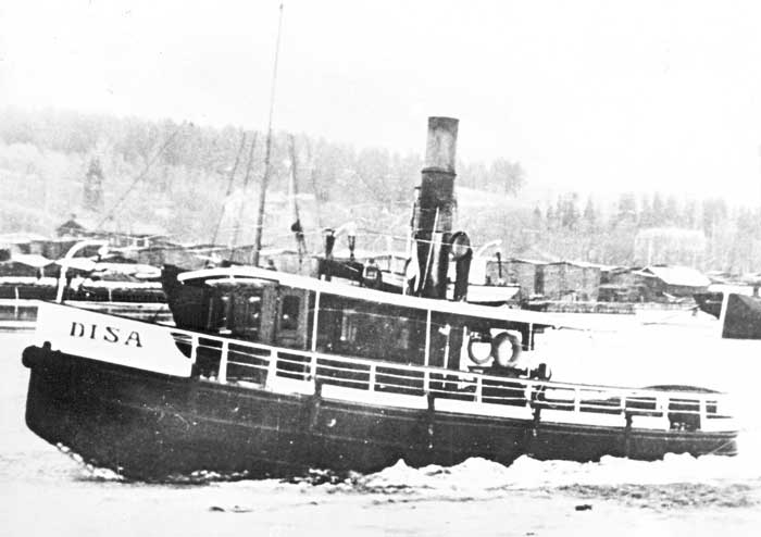 Byggdes för okända. Ägdes 1875 av Carlsviks Bolag, Karlsvik med namnet CARLSVIK. Bolaget ombildades 1880 till Carlsviks Trävaruaktiebolag, Karlsvik, men 1909 såldes hon till J. Jansson, Öregrund som döpte om till DISA. 1913 blev Sundsvalls Stuveribolag /G Byström/, Sundsvall ny ägare. Enligt ett kontrakt den 16 juni 1913 med Hernösands Verkstad & Varfs AB åtog dessa sig att för räkning Sundsvalls Stufveri AB, Sundsvall inmontera en ny ångmaskin om 75 Ihk bogs. samt ny panna i bogserångaren DISA. Leverans skulle ske senast den 20 juli 1913 för ett pris av 6.600 kr. Byström överlät sin firma 1917 till Sundsvalls Förenade Stuveri AB, Sundsvall som den 17 okt 1918 meddelade att de sålt båten till Holmens Bruk & Fabriks AB, Norrköping. På meddelandet stod: redan i vintras. Den 6 okt 1955 meddelade Holmens Bruk att båten, som man döpte till HOLMEN V; Numera är kondemnerad som bogserfartyg och ombyggd till kättingpråm.