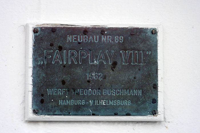 Byggdes för Fairplay Towage, Hamburg som FAIRPLAY VIII. Var stationerad huvudsakligen i Hamburg fram till 2002. Därefter blev Wismar hemmahamn till 2009. Efter 47 års bogseringar har FAIRPLAY VIII överlämnats till Foundation Hamburg Maritim och skall ligga vid Sandtorhafen i Hamburg, öppen för allmänheten.