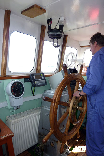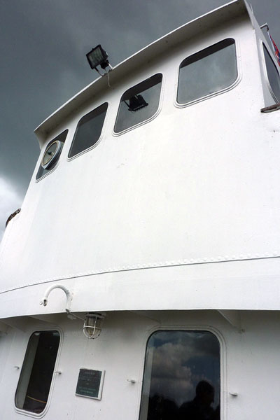 Båten har nu återfått ursprunglig färg och originalutseende, utan påbyggnaden på styrhytten.