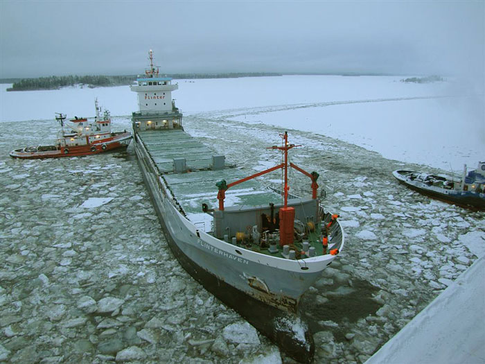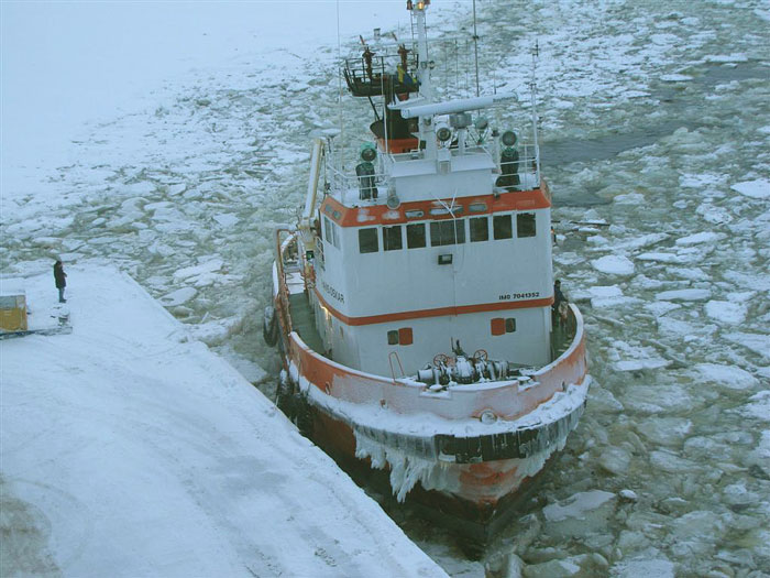 Flinterhaven assisteras till kajen i Karlsborg - 10 januari 2011