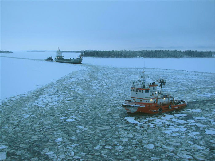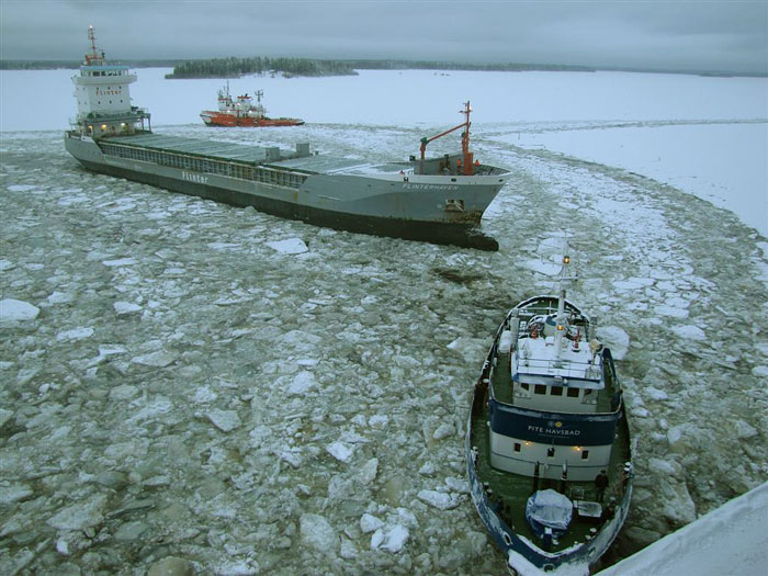 FLINTERHAVEN som skall lasta massa assisteras av ARCTIC EXPLORER och HANS OSKAR