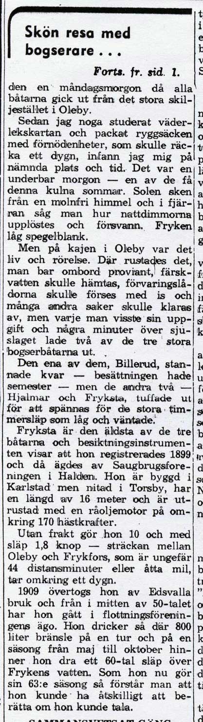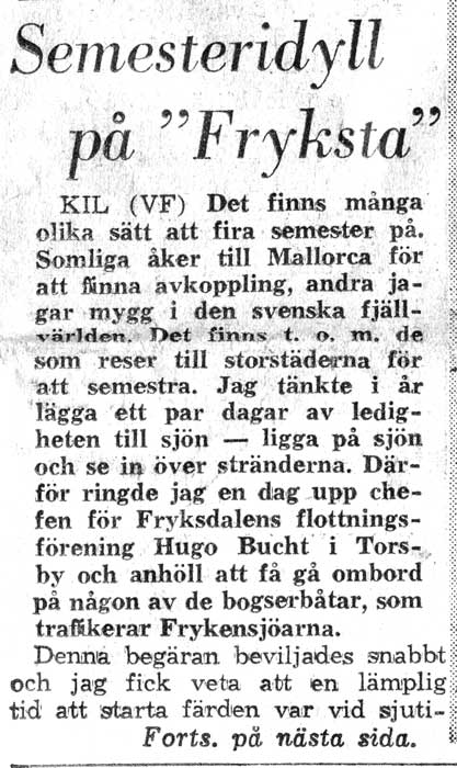 En osignerad tidningsartikel ur Värmlands Folkblad, daterad 14 juni 1962