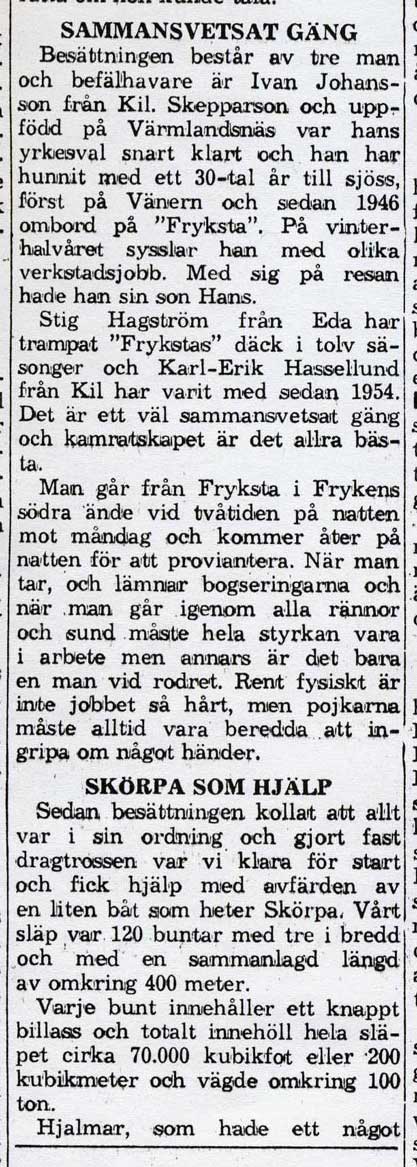 Tidningsurklipp ur Värmlands Folkblad, daterad 14 juni 1962 i Häkan Larssons saml.