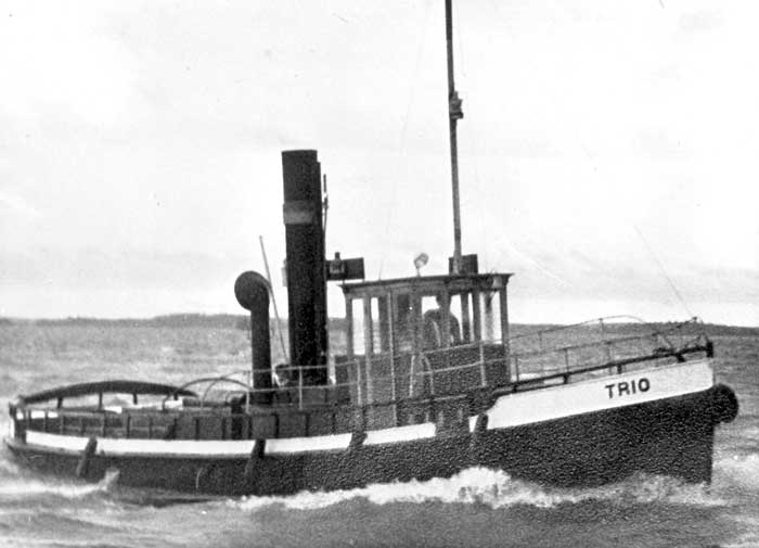 Byggdes för Hjelmarens Sjösänkningsbolag, Örebro som TRIO. Köptes 1906 av Köpings stad, Köping och de ändrade namnet till HURTIG. Köptes 1947 av Gösta Åstedt och Carl Thyberg, Köping som återgav henne namnet TRIO, från 1952 med Gösta Åstedt som ensam ägare. Han sålde 1953 till L. Persson, Södertälje som okänt år satte in en motor och före 1965 sålde till Henry Lundgren, Hägersten. Okänt öde