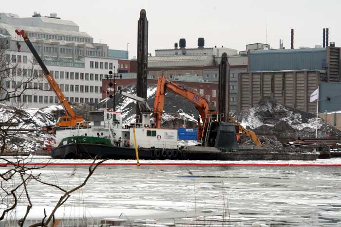 Närmast ligger BIG-BERTHA (SFYJ-12283) - f.d. Stockholm hamns MUDDERVERK NR 2