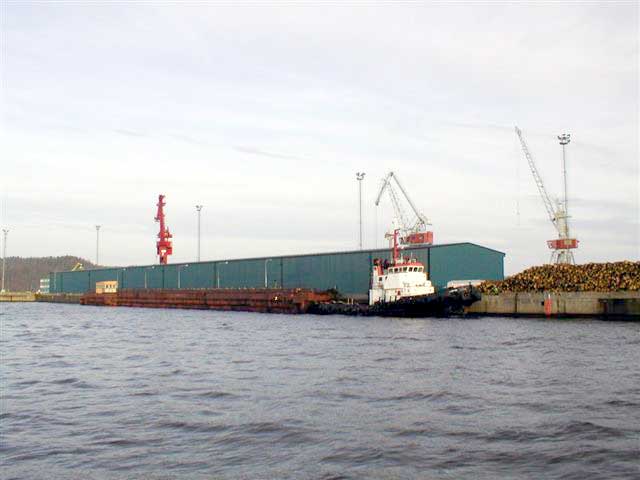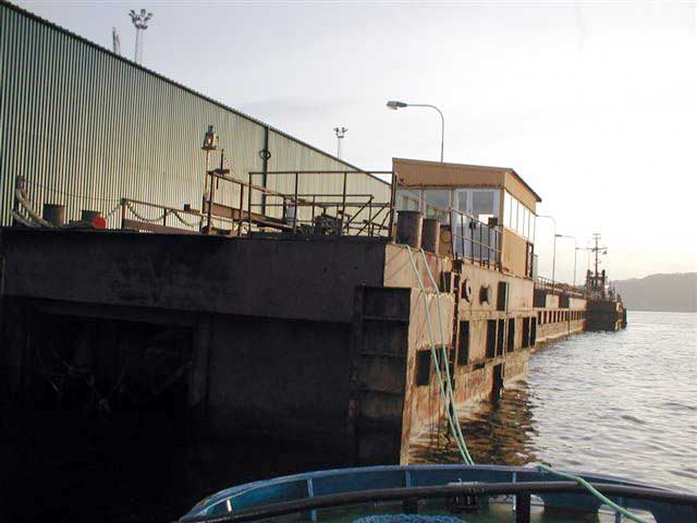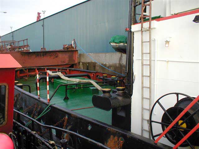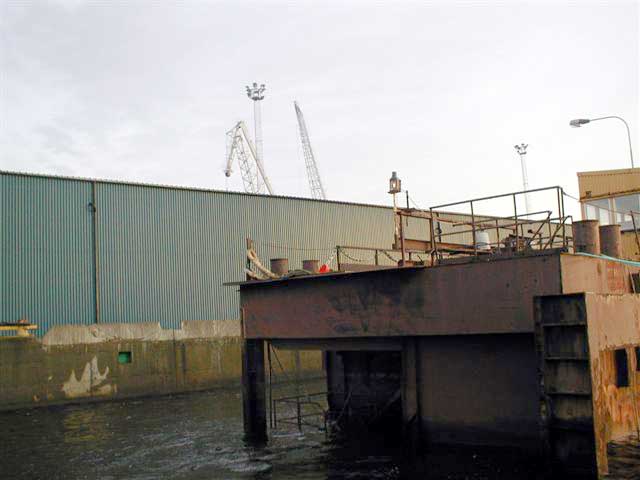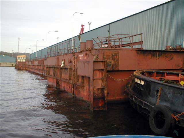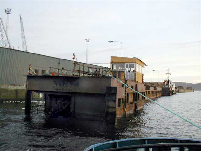 Leopard skall bogsera Uddevallavarvets dockport till Klapeida. Sandinges med Luto assisterade ut från varvet - 26/12 2006.
