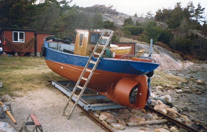 Motor: Ellwe 2 fb, ersatt 1963 av en Volvo-Penta MD-67 på 95 hkr, försedd med vridbar Kamewapropeller, med hydraulisk manöver, arbetande i dysa. Uppmätt dragkraft 1500 kp. Detta var en banbrytande konstruktion för sin tid.