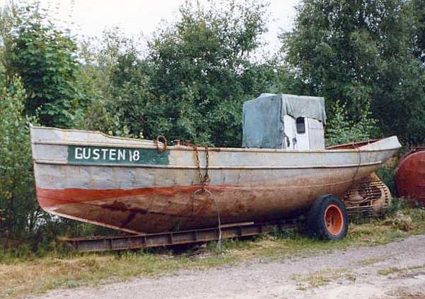 LUSTEN 8 låg kvar i vid flottningsföreningens verkstad Forshaga i flera år efter försäljningen. När den här bilden togs 1989 tycks någon ha roat sig med att kludda på namnet.