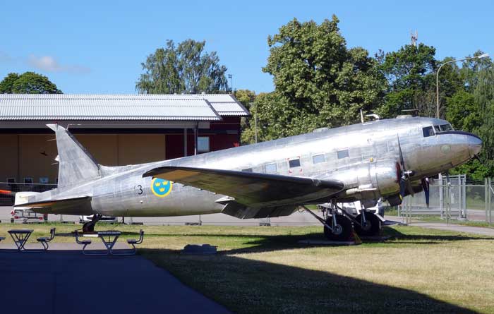 En annan DC 3/C-47 står utanför FV-museet