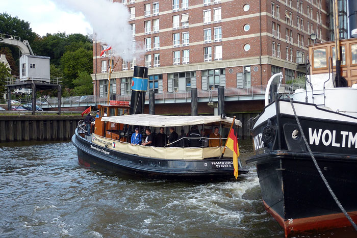 CLAUS D i Hamburg med den tidigare tullbåten PRÄSIDENT SCHAEFER (1925) på utsidan - 26 juli 2007