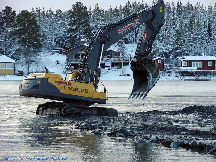 Därefter togs grävaren i land och fortsatte arbeta därifrån - 2/12 2009