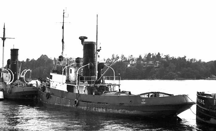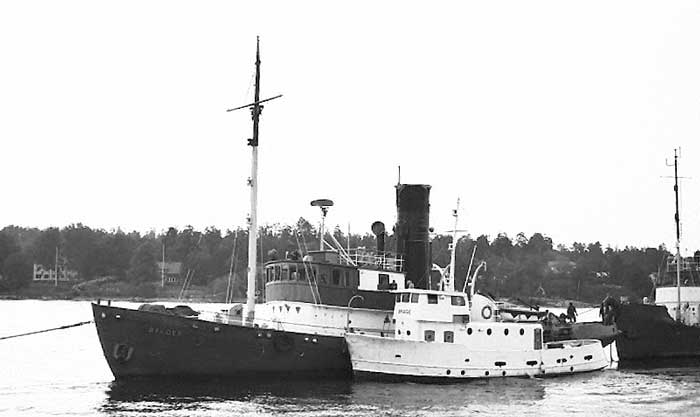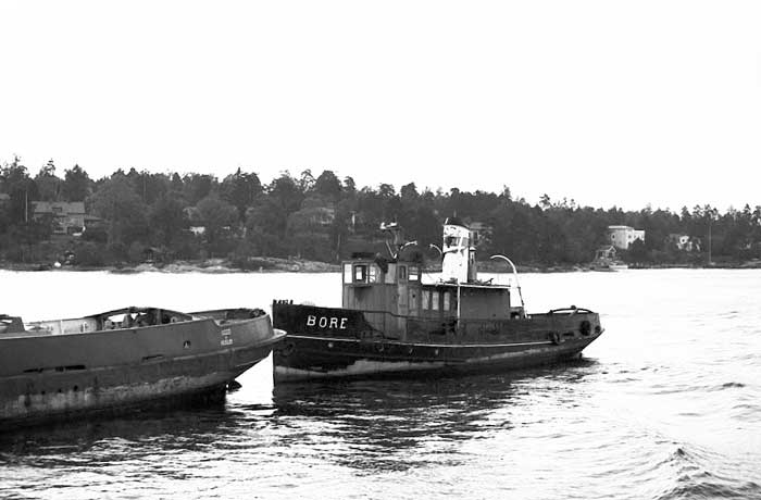 Oden med hjälp av Brage bogserar Balder, Aggö och Bore mot Ystad och skrotning. Bore blev köpt under resans gång och klarade sig från att skrotas.