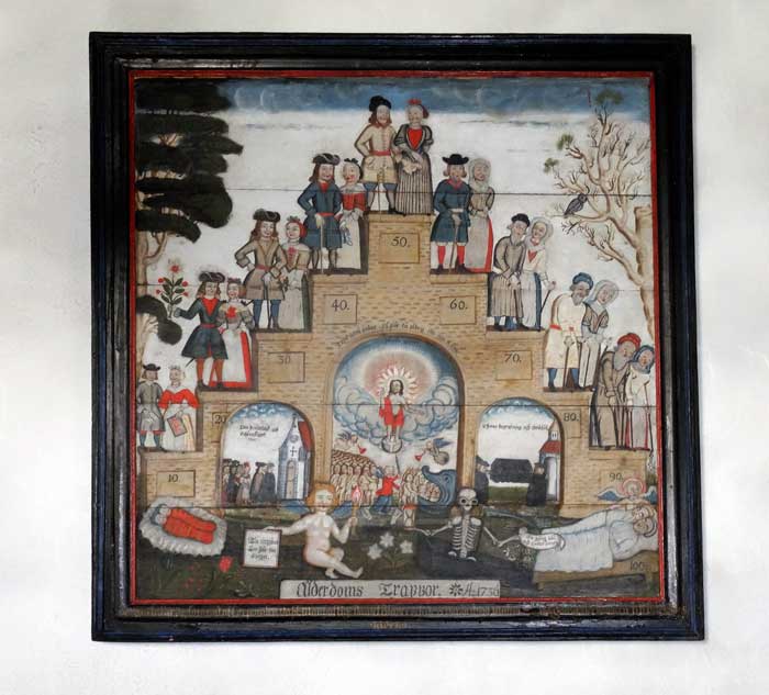 Tavlan Människans åldrar skänktes 1736 av Corporalen Daniel Blavér och Annika Jönsdotter Daggren,