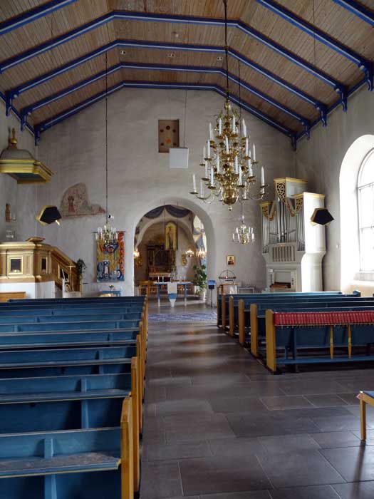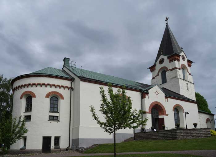 Delar av tornet är från 1100-talet, långhuset från 1700-talet och den halvrunda utbyggnaden åt väster är från 1889. Interiören restaurerades 1990.