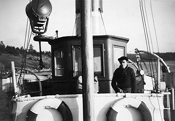 S/S Öhrviken på 1950-talet. På däck står Svante Eriksson.