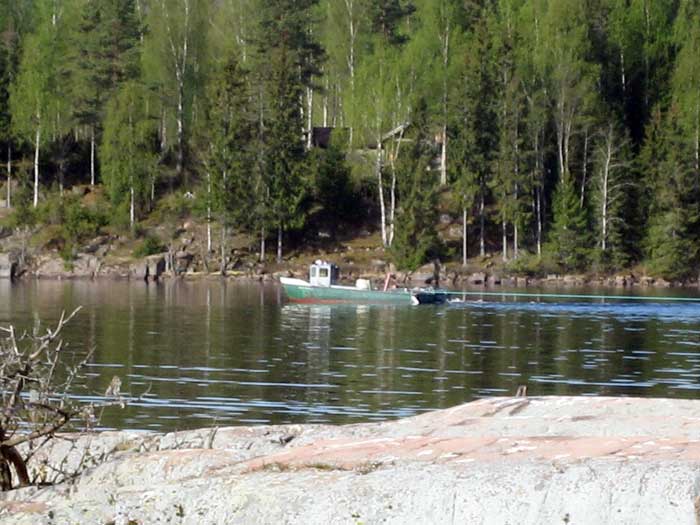På släp hade Dragaren 5 ett antal fiskodlingskassar som nu var tomma efter säsongens slakt i Stöpafors.