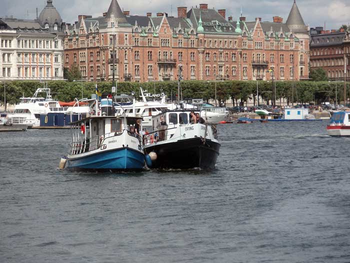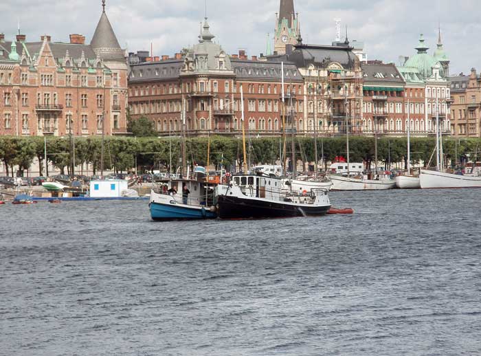 Nymålade, direkt från Beckholmsdockan kommer Öring med Öhrviken II till Skeppsholmen - 18/7 2007