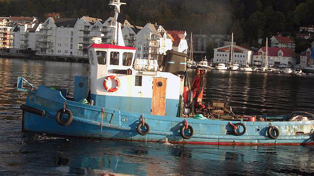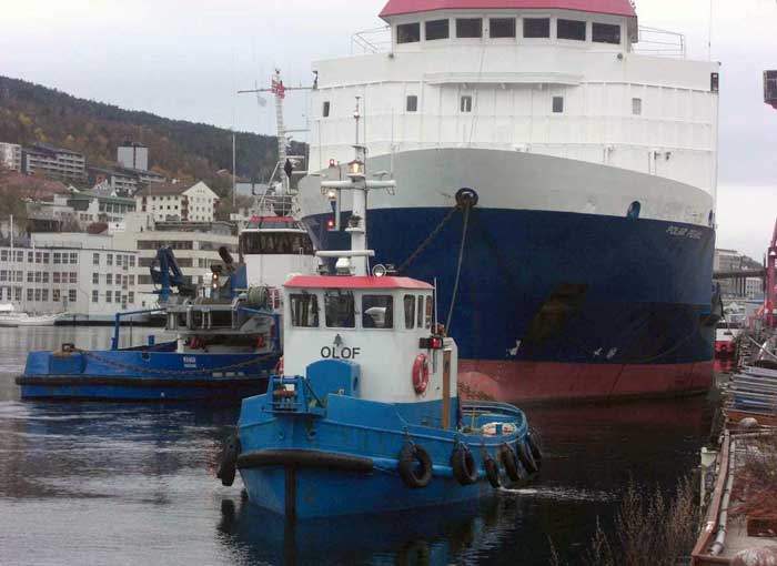 OLOF i Bergen 2008. Bakom skymtar bogserbåtarna KHAN och BEAGLE.