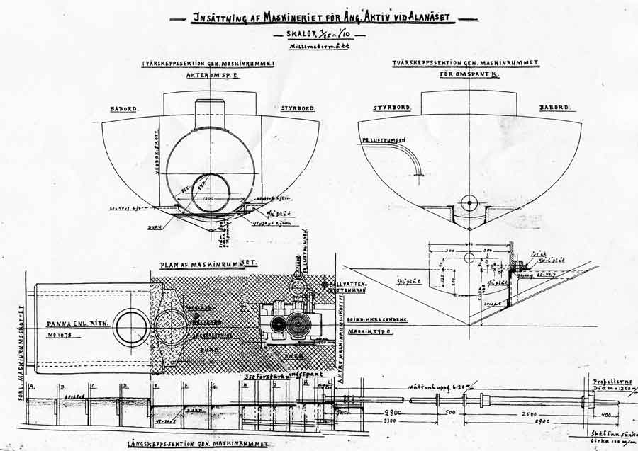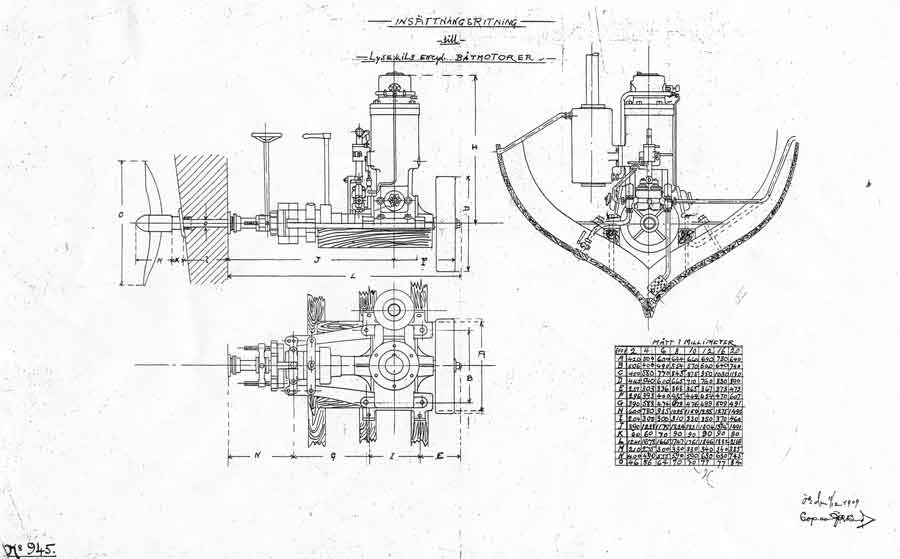 Insättningsritning till Lysekils encyl. båtmotorer - 1909.