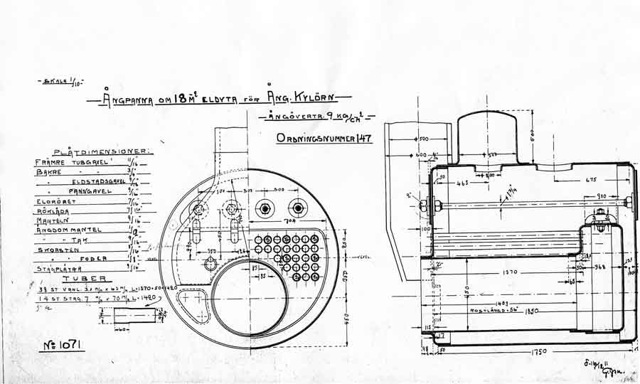 Ångpanna av egen konstruktion för ångaren "Kylörn"- 1911.