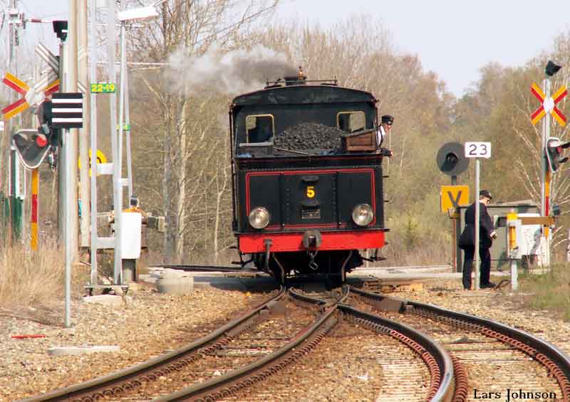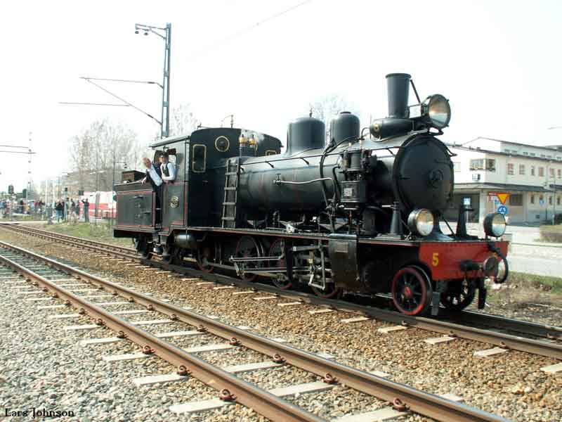 Byvalla-Långshyttans Järnvägs lok nr 5 - Thor, backar ner för att kopplas ihop med personvagnarna.