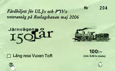 Med anledning av att järnvägen firar 150 år under 2006 så sker en hel del aktiviteter under året. Under tiden 6-10 maj körs ett ångloksdraget tåg på Roslagsbanan.