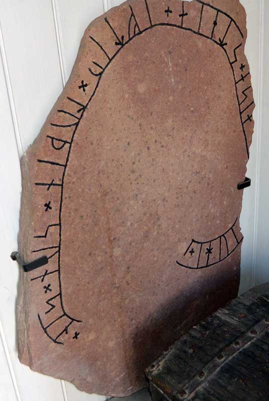 Stenen förvaras inne i kyrkans vapenhus.