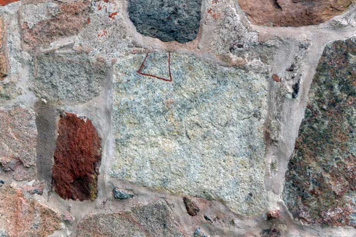 Runstensfragment inmurade i kyrkan