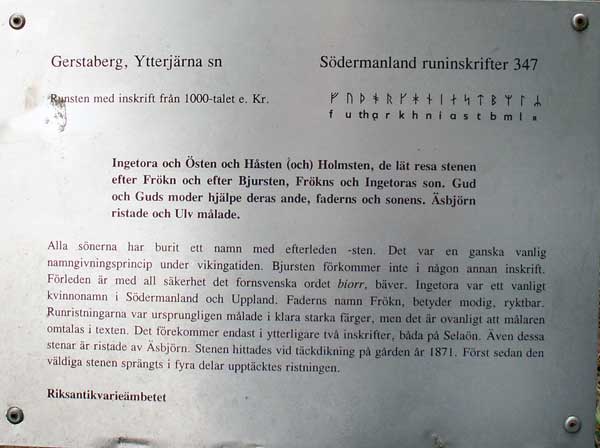 Den första stenen vi besökte var vid Gerstaberg i Järna socken. Stenen blev funnen vid täckdikningar 1871 och flyttades till parken vid Gerstabergs gård. En nyanlagd bilväg för passage över järnvägen gör att det är ganska brant ner till stenen från vägbanken.