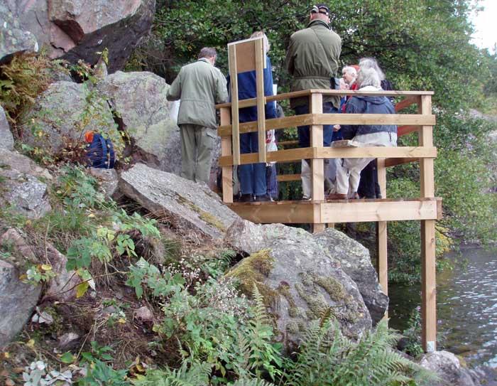 Kulturhistoriska föreningen har låtit bygga plattformen som möjliggör en närmare granskning av ristningen, som tidigare nästan enbart var tillgänglig sjövägen.