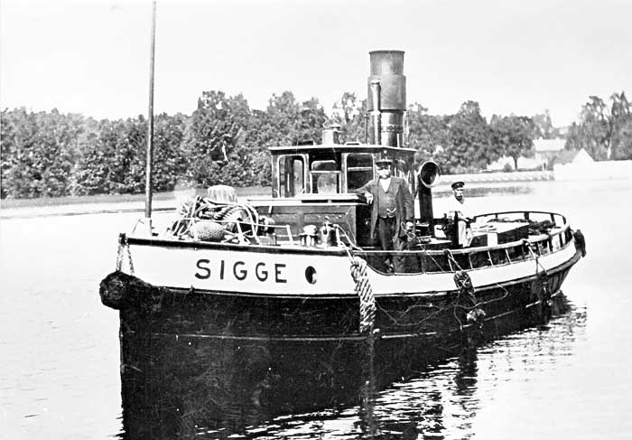 Byggdes för D. & J. Berggrens Bogserings & Transport AB, Stockholm som SIGGE. Bolaget övertogs 1909 av Stockholms Transport & Bogserings AB, Stockholm. T & B gick i konkurs enl. ett meddelande av den 19 jan 1925 och övertogs av Stockholms Enskilda Bank 1925. Såldes den 1 okt 1926 till Carl Ferdinand Pettersson, Träkvista, Vätö för 4.000 kr, (Svenska Skrot AB) men redan den 18 dec samma år överläts hon till Sixten Pettersson, Vätö som 1937 intygade att fartyget skrotats.