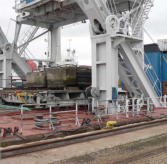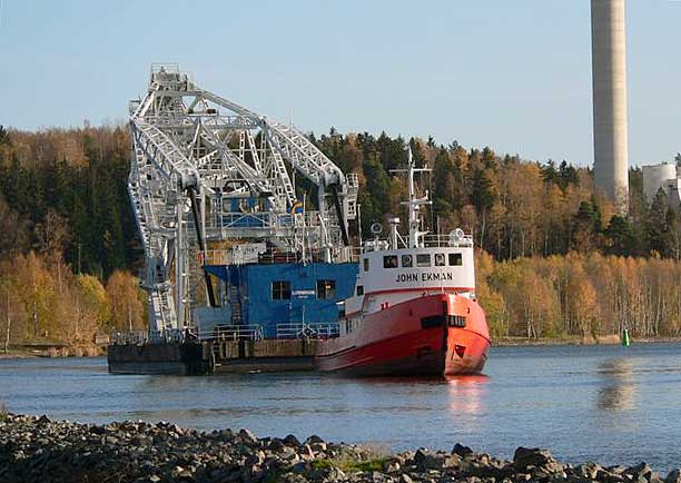 I Uthamnen ligger två mudderverk från Peter Madsen Rederi A/S som används i kanalen vid byggandet av den nya järnvägsbron