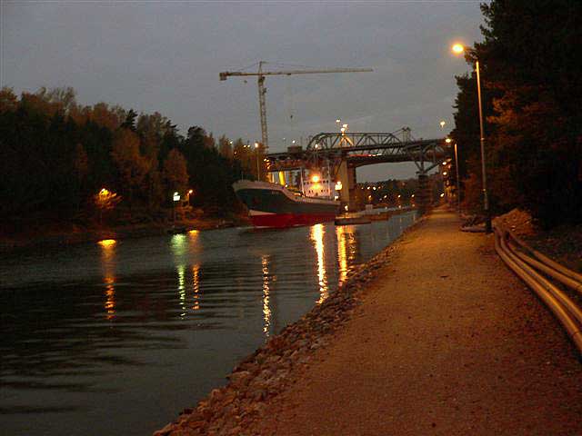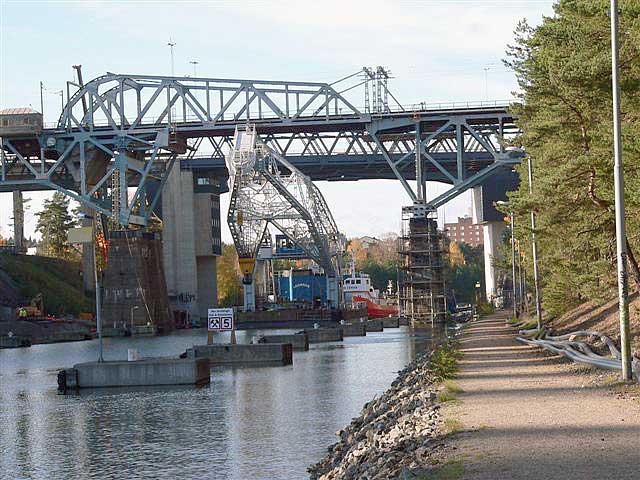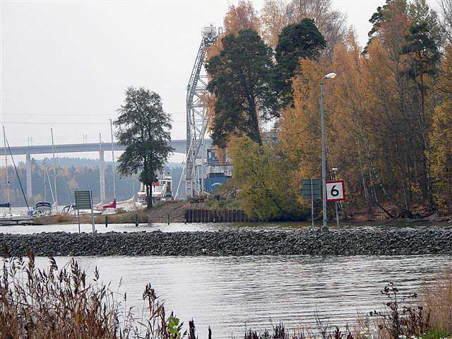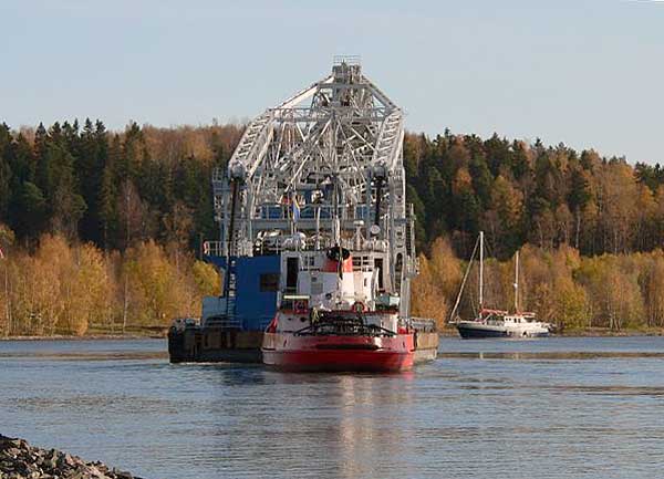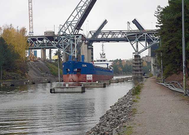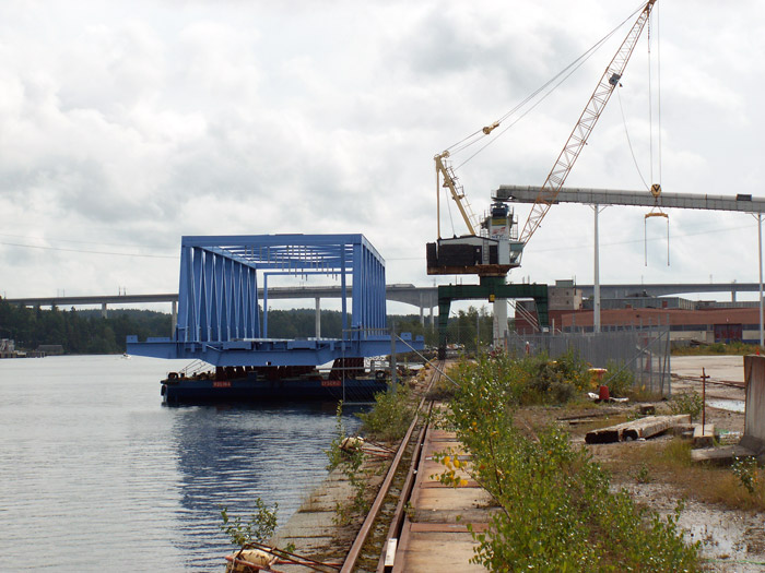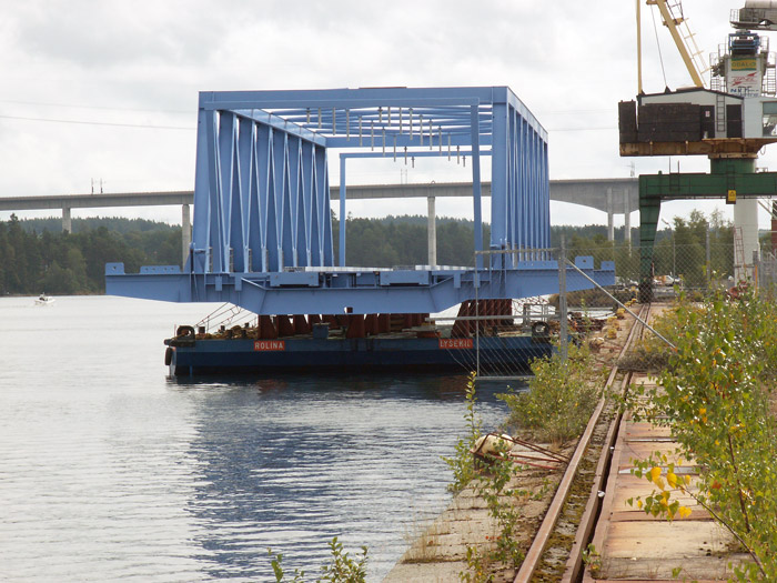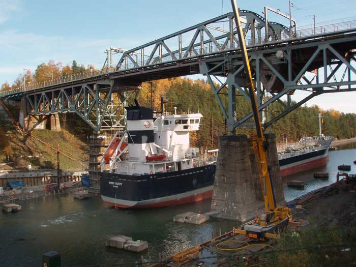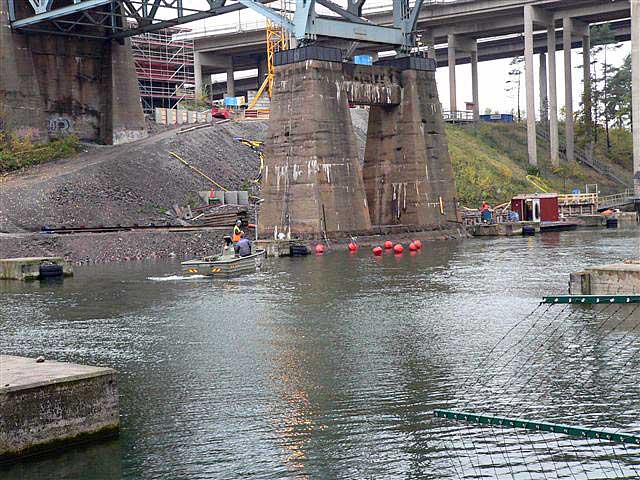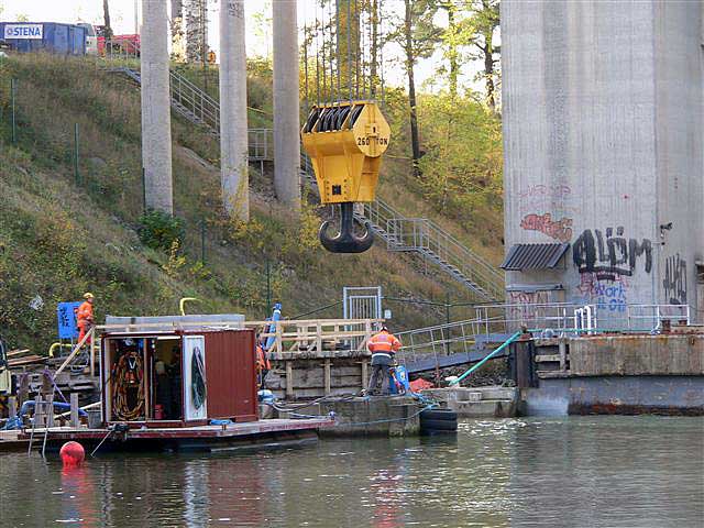 Nu har Lodbrok lagt sig mellan Järnvägsbron och Motorvägsbron redo för att lyfta