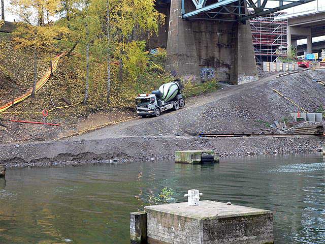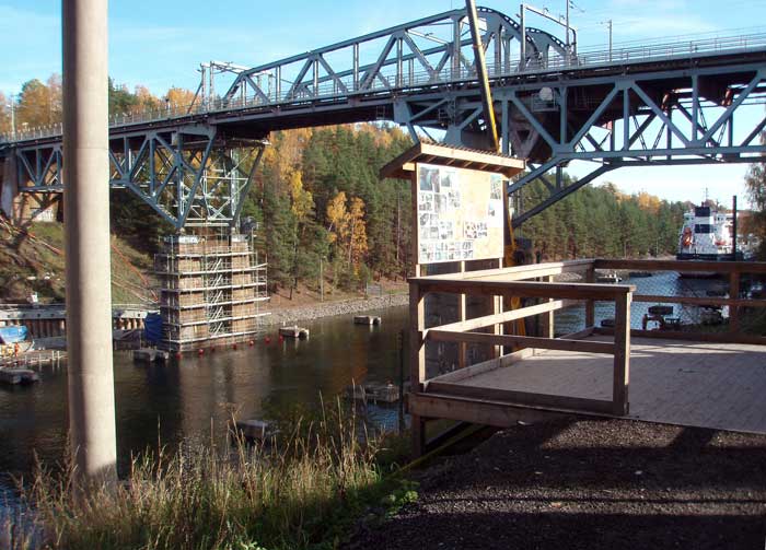På kanalens västra sida finns det en plattform som intresserade kan följa bygget från.
