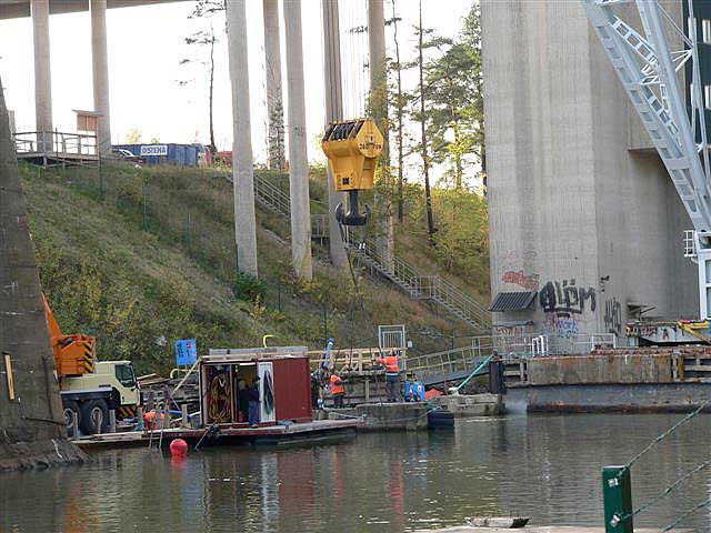 Idag skulle Lodbrok påbörja lyftet av några av de dykdalber som skyddar bropelarna. Sammanlagt 6 timmar under fem dagar är det planerat att kanalen skall vara avstängd.