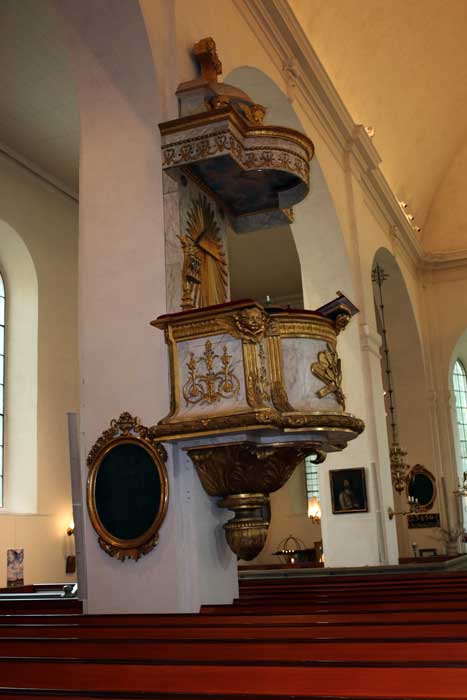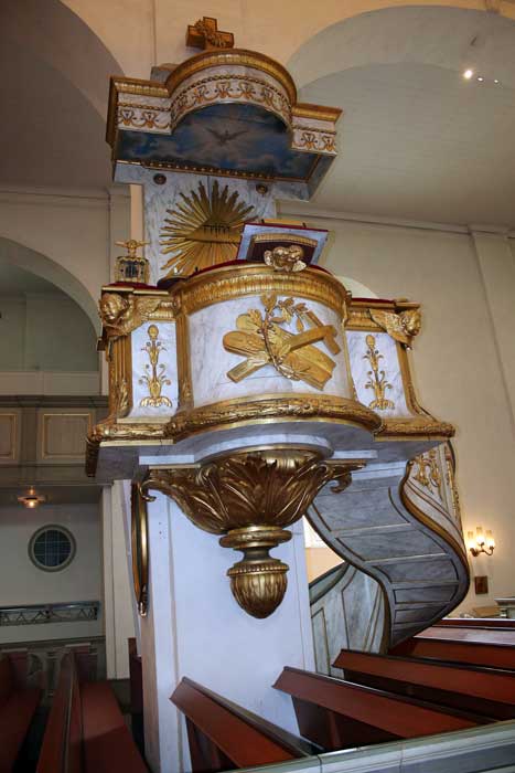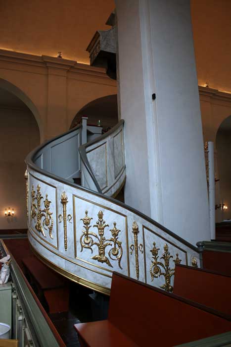 Predikstolen från 1798 är tillverkad av Carl Fredrik Beurling.