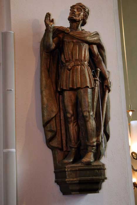 Kyrkans beskyddare, Sankt Olof. Skulptur av John Lundqvist från 1951.