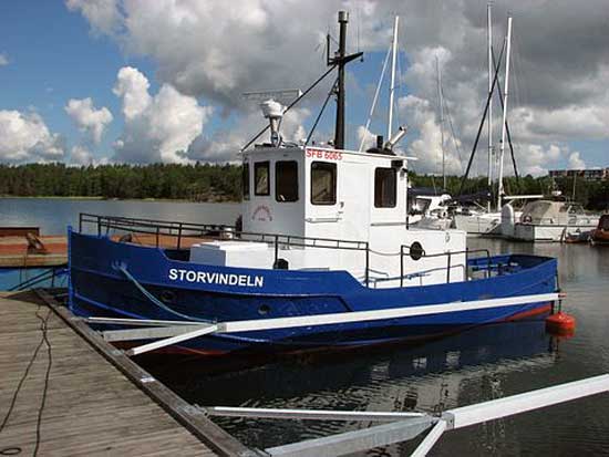 Byggdes för Ume Älvs Flottningsförening, Vindeln som STORVINDELN. Såldes före 1983 till Matts Wikströms Traktortjänst AB, Nynäshamn och ändrades till fritidsbåt. Övertogs före 1992 Wik-Inn Marina AB, Nynäshamn som sålde 2002 till Jonas Lundin, Härnösand för ca 100 000 kr. Köpt våren 2008 av Värmdö Markarbeten AB, vika har satt i nya dieseltankar, monterat automatstyrning sanerat elkablaget, målat och rustat upp båten som inte var i bästa skick.