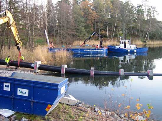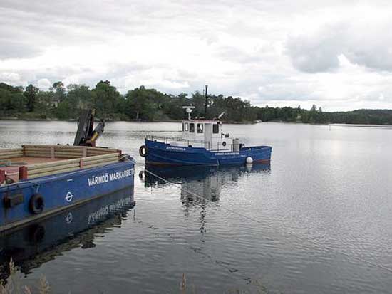 I Tenösundet den 17/9 2006. Det står Aros Water på pråmen.