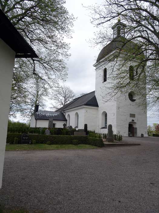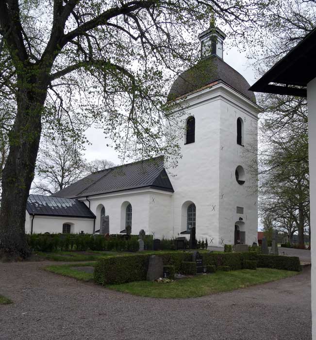 Redan på 1100-talet byggdes här en kyrka, troligtvis en rektangulär kyrka med en halvrund absid. Utgrävningar 1966 visade att den medeltida kyrkan var ca 6,5 meter bred. 1782 revs den tidigare kyrkan och ersattes av nuvarande, som uppfördes under åren 1782-1783. Delar av den gamla kyrkmuren återanvändes. Kyrkans torn blev kortare än tänkt på grund av brist på pengar. Av den anledningen återanvändes även delar av den gamla inredningen.