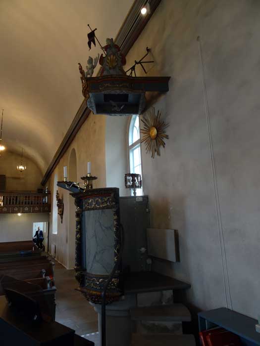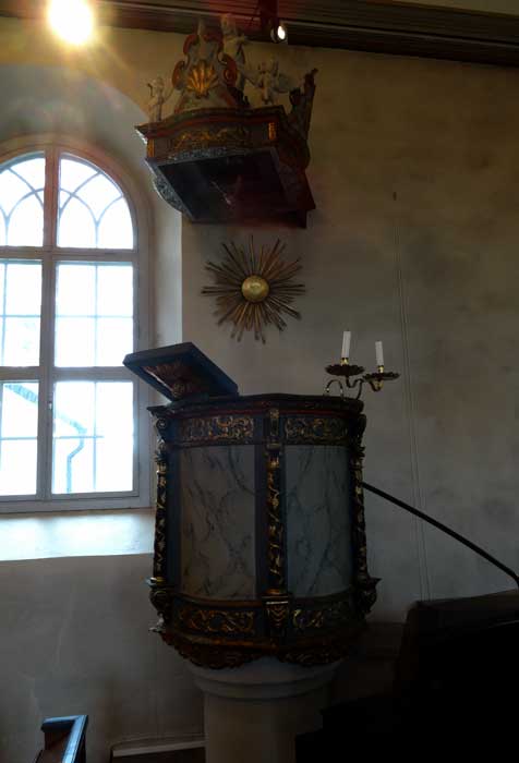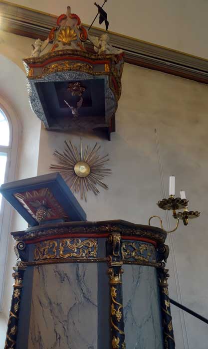 Predikstolen från 1707 är utförd av bildhuggaren Jonas Lind i Norrköping.