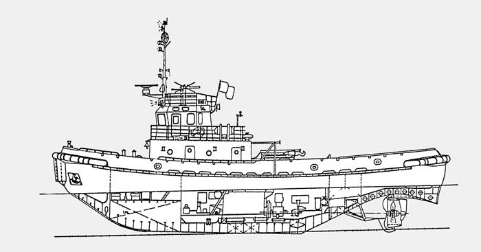 Maskin: 2 st Russkiy 8CHNP25/34 dieselmotorer på 1 600 Hk. Bollard pull 20 ton.