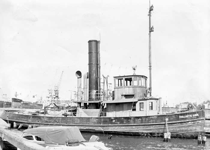 Byggdes för Trollhätte Kanalbolag, Trollhättan som TROLLHÄTTE KANAL. Utrangerades och såldes okänt år till okända köpare, Göteborg och blev liggande i många år. 1997 låg hon dock under under upprustning i Göteborg och det var endast skrovet som återstod. Lär ska ha fått ny styrhytt från en gammal fiskebåt.