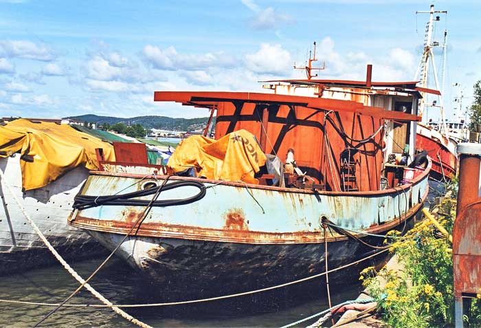 Lite kompletteringar från Nox Johansson: Hytten är mycket riktigt från en gammal fisketrålare - Öserö - byggd 1959 i Öst Tyskland och verksam på Island. Lite om historien också: Efter vad jag fått berättat så beställdes hon av Röda Bolaget, förmodligen för att de förväntade sig ett kontrakt i Trollhätte Kanal. Redan på ritningsstadiet så hade hon namnet TROLLHÄTTE KANAL. Nu blev det ju Kanalbolaget själva som blev ägare och de hade båten till 1968 då hon såldes till Göteborg. Ev. hette bolaget AB Bergsschakt, eller något liknande. Runt 1971 såldes hon igen och blev upplagd vid Klippan/Röda Sten där båten började att förfalla och många delar försvann. Sedan hamnade hon vid Bohus varv där hon sjönk och låg på botten i ca. tio år. Det var fortfarande lera i henne när vi köpte båten 1994. Då var hon ett tomt skal med delar av propelleraxeln, propeller och roder kvar. Däcket var ruttet och originalkappen var inte heller komplett. Båten har sålts och nästa ägare håller på att förlänga hytten, har även försökt att sätta i två Volvo-Pentor bredvid varandra.