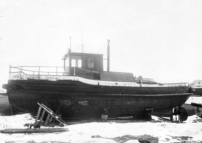 Byggdes för Theodor Hedberg, Köpmanholmen som lustbåt med namnet UNDA. 1936-37 byggdes hon om till bogserbåt (står i en rapport: Fartyget som förut varit en lustjakt är nu under ombyggnad vid Bonässunds slip till motorvarpbåt). Var då överförd till Forss AB /Th Hedberg/, Köpmanholmen. Avfördes 1971. Okänt öde, sannolikt lustbåt igen. Låg enl. J R Boman i Uppsala på 1980-talet.
