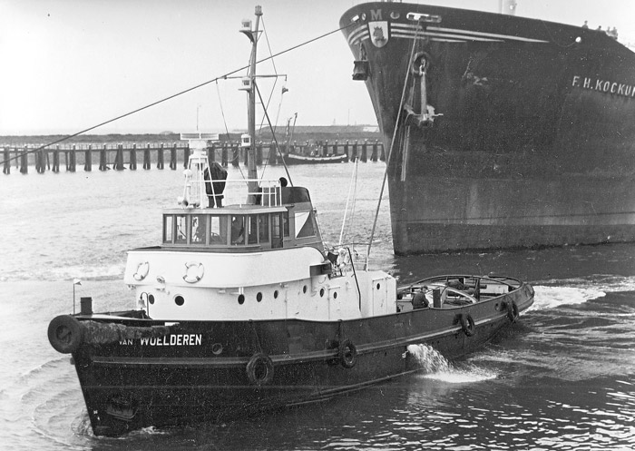 1950: VAN WOELDEREN. Steenkolen-Handelsvereeniging N.V. Vlissingen. 1961: mars månad; Ny huvudmaskin 4-takt 8-cyl Dieselmotor från Lister Blackstone Marine Ltd, Dursley (222x292), 669bhk. 1971: 1 april överförd och omdöpt till TROMP. 1978: VAN WOELDEREN hos B.V. Bergings- en Transportbedrijf Van den Akker, Vlissingen. 1984: Köpt av Van de Marel, Ouwerkerk och vidaresåld till Van Heyghen Fréres för upphuggnings och skrot.