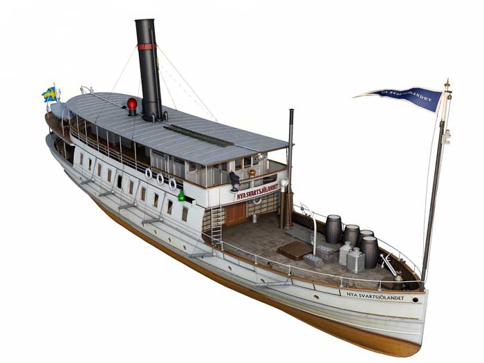Levererades till Ångfartygs AB Nya Svartsjölandet, Svartsjö som NYA SVARTSJÖLANDET.