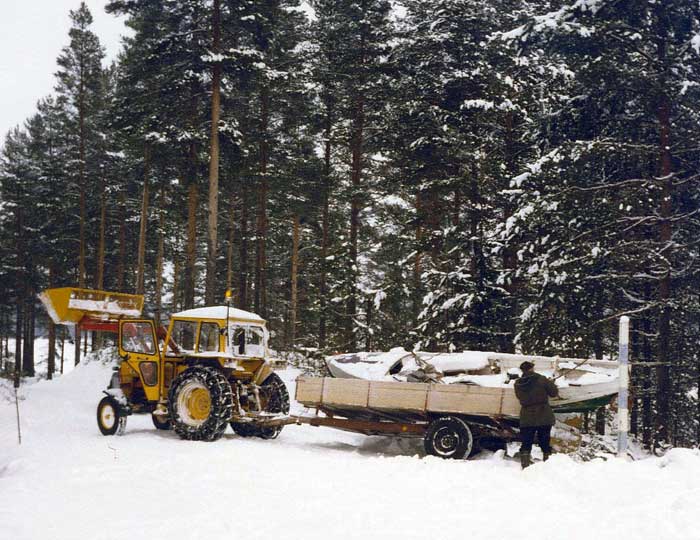 Liksom föregående år lånades en båttrailer av en före detta anställd vid Fryksdalens Flottningsförening, vilken flera år tidigare hade köpt flottningsföreningens Fordsontraktor med tillhörande båttrailer.